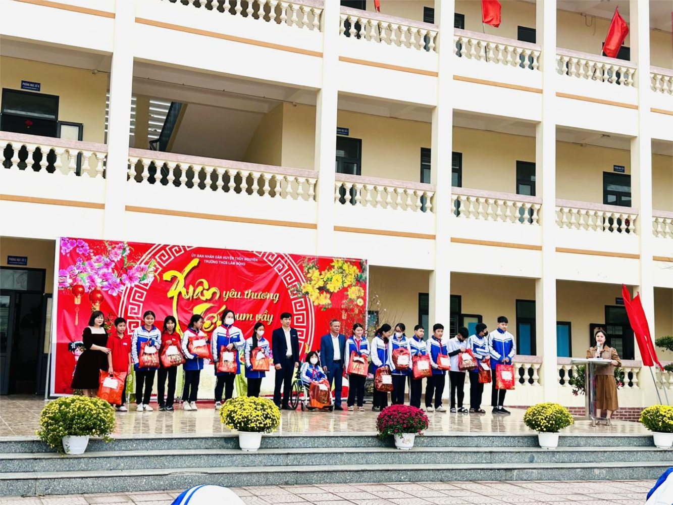 Ngày 6/2/2024, Liên đội trường THCS Lâm Động tổ chức chương trình XUÂN GẮN KẾT - TẾT YÊU THƯƠNG trao tặng quà Tết cho học sinh có vượt khó vươn lên trong học tập